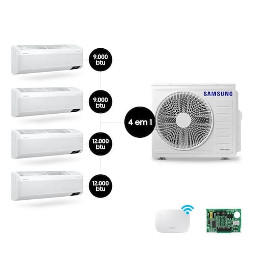 Quad-Split Samsung WindFree 28.000 BTUs (Hi Wall 2x9.000 + 2x12.000) Quente/Frio com WiFi