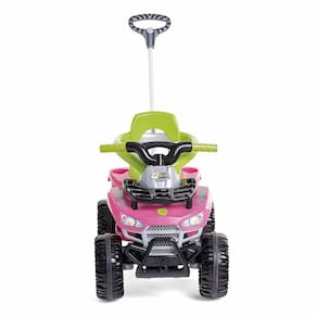 Quadriciclo de Passeio e Pedal - Cross Up - Rosa - Calesita: As crianças sentirão a emoção enquanto exploram horizontes e criam memórias inesquecíveis com a família. Com o Cross Up, cada viagem se transforma em uma aventura. Seu design robusto adiciona um toque de ousadia e diversão às ruas. Oferece uma experiência de condução segura e estável em qualquer terreno, não importa se você está explorando as calçadas da cidade ou conquistando trilhas off-road, este rodado está pronto para qualquer desafio. Enfrente qualquer terreno com confiança e estilo, e deixe sua marca por onde passar! E para completar no Cross Up vem junto o nosso suporte para sombrinha. Com o suporte é possível passear com os pequenos protegendo eles da luz direta do sol. Cross Up - 2 em 1 - passeio e pedal: • Função pedal: Ao remover os acessórios o Cross Up vira um lindo quadriciclo de pedalar • Função passeio: mantendo os acessórios, os papais podem guiar o passeio ao empurrar o Cross Up Detalhes: • Brinquedo 2 em 1 • Rodas com borracha para não derrapar • Suporte regulável para sombrinha (Não acompanha sombrinha) • Encaixe e desencaixe o empurrador com praticidade • Apoio de pé removível • Suporte para bolsa • Mais facilidade para pedalar com tração por correia • Direção e rodas guiadas pelo empurrador. Informações: • Produto: Quadriciclo Cross Up 2 em 1 • Marca: Calesita • Coleção: Cross UP • Tipo: Quadriciclo 2 em 1 - Passeio e Pedal • Categoria: Carrinho de Passeio e Pedal • Peso máximo suportado: até 30 kg • Dimensões (C x A x L): - 87 x 53 x 62.5 cm (sem haste) - 87 x 53 x 103 cm (com haste) • Volume (Peso): 6.95 kg • Conteúdo: - 01 Cross up - 01 Empurrador com suporte pra bolsa - 01 Aro de proteção - 01 Par de apoio pros pés - 01 Suporte para sombrinha - 01 Manual de instruções • Recomendação: - para crianças a partir de 12 meses de idade (passeio) - para crianças a partir de 24 meses de idade (pedal) Especificações: • Referência: 1063 • Código de Barras: 7898179824267 • Embalagem (C x A x L): 87 x 63 x 53 cm • Embalagem (Peso): 8.6 kg • Material / Composição: Plástico • Registro: CE-BRI/INNAC-02026-02A NM 300/2002 • Certificado: Órgãos Autorizados - OCP´S (Organismos de Certificação de Produtos) Aviso: • As imagens são meramente ilustrativas • Os pesos, tamanhos e medidas são aproximados • As cores e estampas dos produtos podem ter variações • As informações são de responsabilidade do fabricante ou fornecedor
