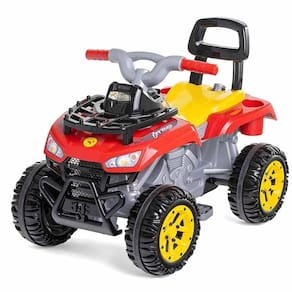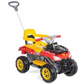Quadriciclo de Passeio e Pedal - Cross Up - Vermelho - Calesita: As crianças sentirão a emoção enquanto exploram horizontes e criam memórias inesquecíveis com a família. Com o Cross Up, cada viagem se transforma em uma aventura. Seu design robusto adiciona um toque de ousadia e diversão às ruas.Oferece uma experiência de condução segura e estável em qualquer terreno, não importa se você está explorando as calçadas da cidade ou conquistando trilhas off-road, este rodado está pronto para qualquer desafio. Enfrente qualquer terreno com confiança e estilo, e deixe sua marca por onde passar! E para completar no Cross Up vem junto o nosso suporte para sombrinha. Com o suporte é possível passear com os pequenos protegendo eles da luz direta do sol.Cross Up - 2 em 1 - passeio e pedal:- Função pedal: Ao remover os acessórios o Cross Up vira um lindo quadriciclo de pedalar- Função passeio: mantendo os acessórios, os papais podem guiar o passeio ao empurrar o Cross UpDetalhes:- Brinquedo 2 em 1- Rodas com borracha para não derrapar- Suporte regulável para sombrinha (Não acompanha sombrinha)- Encaixe e desencaixe o empurrador com praticidade- Apoio de pé removível- Suporte para bolsa- Mais facilidade para pedalar com tração por correia- Direção e rodas guiadas pelo empurrador.Informações:- Produto: Quadriciclo Cross Up 2 em 1- Marca: Calesita - Coleção: Cross UP- Tipo: Quadriciclo 2 em 1 - Passeio e Pedal- Categoria: Carrinho de Passeio e Pedal- Peso máximo suportado: até 30 kg- Dimensões (C x A x L): - 87 x 53 x 62.5 cm (sem haste)- 87 x 53 x 103 cm (com haste)- Volume (Peso): 6.95 kg- Conteúdo: - 01 Cross up- 01 Empurrador com suporte pra bolsa- 01 Aro de proteção- 01 Par de apoio pros pés- 01 Suporte para sombrinha- 01 Manual de instruções- Recomendação: - para crianças a partir de 12 meses de idade (passeio)- para crianças a partir de 24 meses de idade (pedal)Especificações:- Referência: 1060- Código de Barras: 7898179824243- Embalagem (C x A x L): 87 x 63 x 53 cm- Embalagem (Peso): 8.6 kg- Material / Composição: Plástico- Registro: CE-BRI/INNAC-02026-02A NM 300/2002- Certificado: Órgãos Autorizados - OCPS (Organismos de Certificação de Produtos)Aviso: - As imagens são meramente ilustrativas- Os pesos, tamanhos e medidas são aproximados- As cores e estampas dos produtos podem ter variações- As informações são de responsabilidade do fabricante ou fornecedor