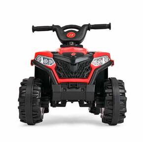 * Material : Plástico e aço carbono * Velocidade : 5km/h * Farol de LED dianteiro e traseiro * Música no painel * Não contem controle remoto ( a própria criança controla o brinquedo ) * Botão liga/desliga. * Velocidade : 5km/h * Carregamento: De 8 à 12 horas * Capacidade: 1 Criança * Pedal para que a criança possa acelerar