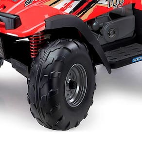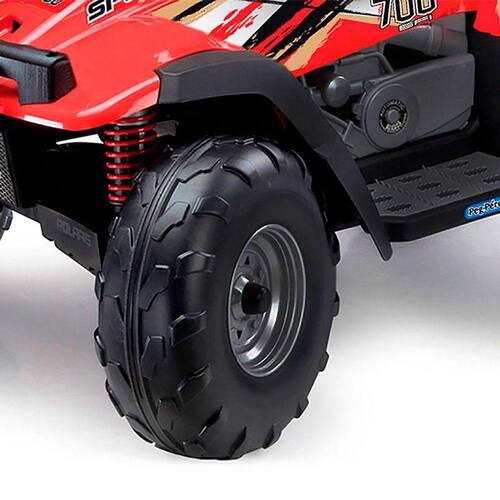 O Polaris Sportsman é produzido com materiais resistentes e movido a bateria de 12 volts. Tem buzina, rodas em plástico rígido com suspensão e bagageiro para levar os pertences.