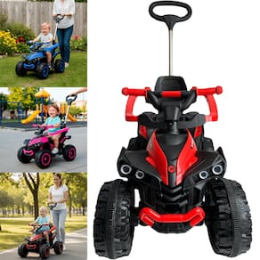 O Quadriciclo Elétrico Pimpi Flash Wheels da Topplay é equipado com bateria 6V e painel de comando. Possui botão que aciona músicas, buzina e faróis com funcionamento ativo. Mesmo sendo elétrico, o modelo conta com haste guia, permitindo que o adulto conduza o brinquedo durante os passeios.
