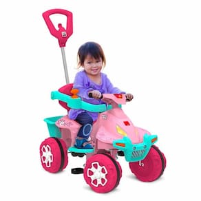 Quadriciclo Infantil - Passeio e Pedal - Smart Quad - Rosa - Bandeirante: O quadriciclo de passeio e pedal Smart Quad da Bandeirante é um produto com duas funções, prático e moderno para o adulto e divertido para as crianças! Smart Quad - 2 em 1 - Passeio e Pedal: • Função passeio: O adulto utiliza a haste (direcionável) para conduzir o Smart Quad. Basta colocar o cercado de proteção e o apoio dos pés • Função pedal: Permite à criança pedalar livremente como um carro a pedal. Basta remover a haste, o cercado de proteção e o apoio dos pés Detalhes: • Guidão Com lente e luz de LED • Suporte Para garrafa d'água, mamadeira ou squeeze (no cercado) • Apoio traseiro anatômico • Haste Direcionável e removível • Suporte para Bolsa/sacola • Cercado de proteção removível • Com prático sistema de abertura lateral • Baú sob o assento • Caçamba traseira • Apoio removível • Mantém os pés da criança apoiados confortavelmente • Novo sistema de tração • Cardan para maior conforto e agilidade ao pedalar • Rodas com anéis de proteção • Apoios removíveis para os pés Informações: • Produto: Carrinho Smart Quad 2 em 1 • Marca: Bandeirante Brinquedos • Coleção: Smart Quad • Tipo: Quadriciclo 2 em 1 - Passeio e Pedal • Categoria: Carrinho de Passeio e Pedal • Tamanho (C x A x L): 102.7 X 51.2 X 110.7 cm • Peso suportado: até 35 kg • Conteúdo: 01 Smart Quad • Idade recomendada: para crianças a partir de 12 meses de idade Especificações: • Referência: 1220 • Código de barras: 7899091412204 • Embalagem (C x A x L): 82.5 x 50 x 51.5 cm • Embalagem (Peso): 7.4 kg • Material Composição: Plástico • Registro: 003842/2021 OCP: 0061 • Certificado: Órgãos Autorizados - OCP´S (Organismos de Certificação de Produtos) Habilidades desenvolvidas: • Curiosidade e descoberta • Compreensão de causa e efeito • Coordenação entre olhos e pés • Coordenação motora fina - mãos e dedos • Coordenação motora grossa - braços e pernas Aviso: • As imagens são meramente ilustrativas • Os pesos, tamanhos e medidas são aproximados • As cores e estampas dos produtos podem ter variações • As informações são de responsabilidade do fabricante ou fornecedor