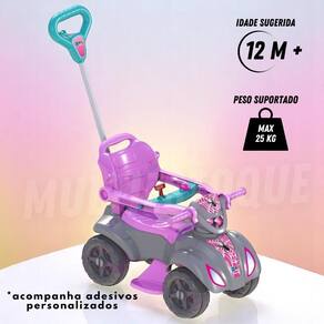 Quadriciclo infantil rosa baby aranha - diversão garantida Quadriciclo infantil baby aranha girl - rosa Você já notou como é fundamental para crianças de 1 a 3 anos explorarem o ambiente ao seu redor Sem um brinquedo seguro e divertido, elas podem perder a chance de desenvolver habilidades essenciais enquanto se divertem. O quadriciclo infantil é o companheiro perfeito para essas descobertas com um design moderno e vibrante, transforma cada passeio em uma aventura memorável. A haste guia permite que os pais conduzam o brinquedo com total controle, garantindo segurança e tranquilidade. Além disso, o apoio retrátil para os pés e as proteções laterais proporcionam estabilidade, evitando quedas indesejadas. Benefícios - melhora o equilíbrio e a coordenação motora - estimula a autonomia e a autoconfiança - inclui adesivos personalizados para uma brincadeira criativa - design colorido que encanta as crianças Especificações técnicas - material: plástico - peso: aproximadamente 5kg - dimensões: quadriciclo: larg.: 35cm x alt.: 53cm x comp.: 60cm; haste: larg.: 3cm x alt.: 75cm - cor: colorido rosa, cinza, preto, branco - registro inmetro: 009183/2024 Conteúdo da embalagem - 01 quadriciclo infantil baby aranha girl - rosa Não perca a oportunidade de proporcionar momentos incríveis de diversão e aprendizado para seu filho adquira já o quadriciclo e veja a alegria nos olhos dele Informações importantes sobre a compra - com de fábrica Dúvidas frequentes: 2 - em quanto tempo meu pedido será enviado 3 - é seguro fazer esta compra Resposta: desde a fundação da nossa empresa, temos milhares de clientes satisfeitos em outras lojas online. Somos uma loja oficial neste marketplace. Além das garantias da plataforma, oferecemos de fábrica. 4 - os produtos têm Resposta: sim, oferecemos de 30 dias em todos os nossos produtos. Se houver qualquer problema, resolveremos da melhor forma possível. 5 - esta compra é segura Resposta: sim, garantimos total segurança na sua compra e sigilo dos seus dados. 6 - e se eu não gostar do produto, terei meu dinheiro de volta Resposta: de acordo com o cdc código de defesa do consumidor , todo cliente de compras online tem até 7 dias para devolver o produto em caso de arrependimento, sem custo na devolução. Você será reembolsado em 100% do valor da compra. Caso tenha alguma dúvida, envie-nos uma mensagem e responderemos o mais rápido possível. Homologação Inmetro: 7724/2022-BRI-TR-6 Marca: Não Informado