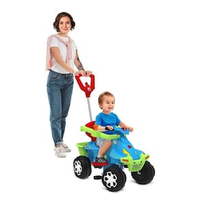 Quadriciclo Passeio Smart Quad Pedal Azul - Bandeirante FUNÇÃO PASSEIO: O adulto utiliza a haste (direcionável) para conduzir o Smart Quad. Basta colocar o cercado de proteção e o apoio dos pés. FUNÇÃO PEDAL: Permite à criança pedalar livremente como um carro a pedal. Basta remover a haste, o cercado de proteção e o apoio dos pés. Guidão Com lente e luz de LED. Suporte Para garrafa dágua, mamadeira ou squeeze (no cercado). Apoio traseiro anatômico. Haste Direcionável e removível. Suporte para Bolsa/sacola. Cercado de proteção removível Com prático sistema de abertura lateral. Baú sob o assento. Caçamba traseira. Apoio removível Mantém os pés da criança apoiados confortavelmente. Novo sistema de tração Cardan para maior conforto e agilidade ao pedalar. Rodas com anéis de proteção. Apoios removíveis para os pés. Idade: +12 meses. Peso máximo suportado: 35kg.Selo Inmetro: 003840/2021 OCP: 0061