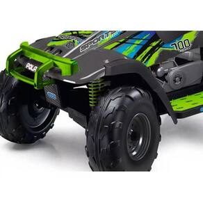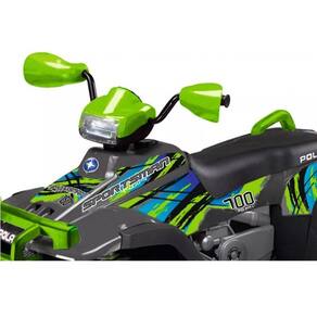 Seu filho vai adorar o Polaris Sportsman 700 Twin! O brinquedo oferece diversão garantida no passeio sobre quatro rodas. Com bateria recarregável, mãos no guidão, acelerador e freio no mesmo pedal é só partir para os passeios mais divertidos e com toda segurança. Com dois lugares para crianças entre 3 a 8 anos e peso de no máximo (total) de 60kg. O POLARIS SPORTSMAN é produzido com materiais resistentes e é movido com bateria de 12 volts. Tem buzina, rodas em plástico rígido com suspensão, bagageiro para levar os pertences. E tem uma grande perfomance em subida e também em diferentes tipos de terrenos e superfícies irregulares ou lisas como grama ou saibro com inclinações de até 17%.