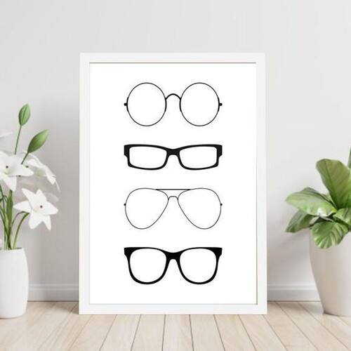 Quadro 4 Óculos 24X18Cm Moldura: madeira branca Informações do produto tire todas as suas dúvidas no descritivo abaixo: decoração para quarto, sala, cozinha, escritório, área gourmet e muito mais. Chega de paredes vazias medidas - cada peça tem 24x18cm a5 . Material do papel - papel fotográfico brilhante de altíssima resolução acabamento - todos os quadros são acompanhados de uma película de acetato para proteção da imagem. - moldura em madeira maciça na cor branca e pendurador móvel que pode ser retirado facilmente caso deseje fixar com fita dupla face. - os quadros são embalados de forma segura com plástico bolha com camada dupla de acordo com o tamanho dos quadros. - de 3 meses prazo de envio pedimos 24 horas úteis no máximo para enviar seu pedido após o envio, segue os prazos normais dos correios, cerca de 7 exceto para norte e nordeste, que pode ser de até 14 . Em diversas cidades, este prazo normalmente é reduzido, mas depende do prazo dos correios. Meu quadro chegou. Como posso fixá-lo Você precisa apenas de um martelo e um prego, pois os quadros já vão acompanhados de penduradores. Esta é a forma mais indicada. Caso prefira, você pode utilizar uma fita dupla face neste caso, sugerimos de alta qualidade para evitar que descole e seu quadro caia . Como posso limpar meu quadro A limpeza é feita como um móvel comum da sua casa. Apenas um pano seco ou espanador são suficientes para tal Marca: Não Informado