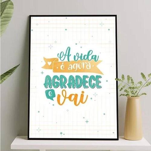 Quadro a vida é agora agradece e vai 45x34cm Moldura: madeira preta Informações do produto tire todas as suas dúvidas no descritivo abaixo: decoração para quarto, sala, cozinha, escritório, área gourmet e muito mais. Chega de paredes vazias. Medidas - cada peça tem 45x34cm a3 . Material do papel - papel fotográfico brilhante de altíssima resolução acabamento - todos os quadros são acompanhados de uma película de acetato para proteção da imagem. - os quadros são embalados de forma segura com plástico bolha com camada dupla de acordo com o tamanho dos quadros. Garantia - garantia de 3 meses. Meu quadro chegou. Como posso fixá-lo Você precisa apenas de um martelo e um prego, pois os quadros já vão acompanhados de penduradores. Esta é a forma mais indicada. Caso prefira, você pode utilizar uma fita dupla face neste caso, sugerimos de alta qualidade para evitar que descole e seu quadro caia . Como posso limpar meu quadro A limpeza é feita como um móvel comum da sua casa. Apenas um pano seco ou espanador são suficientes para tal