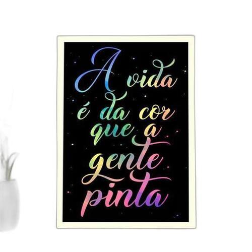 Quadro A Vida É Da Cor Que A Gente Pinta 60X40Cm Branca Moldura: madeira branca Informações do produto tire todas as suas dúvidas no descritivo abaixo: decoração para quarto, sala, cozinha, escritório, área gourmet e muito mais. Chega de paredes vazias medidas - cada peça tem 60x42cm a2 . Material do papel - papel fotográfico brilhante de altíssima resolução acabamento - todos os quadros são acompanhados de uma película de acetato para proteção da imagem. - os quadros são embalados de forma segura com plástico bolha com camada dupla de acordo com o tamanho dos quadros. - de 3 meses. Meu quadro chegou. Como posso fixá-lo Você precisa apenas de um martelo e um prego, pois os quadros já vão acompanhados de penduradores. Esta é a forma mais indicada. Caso prefira, você pode utilizar uma fita dupla face neste caso, sugerimos de alta qualidade para evitar que descole e seu quadro caia . Como posso limpar meu quadro A limpeza é feita como um móvel comum da sua casa. Apenas um pano seco ou espanador são suficientes para tal Marca: Não Informado