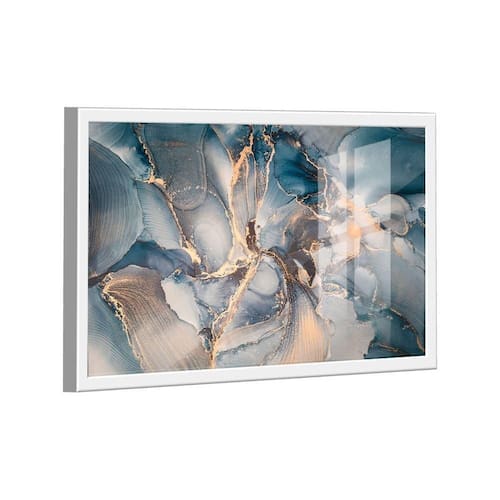 Quadro Abstrato Azul Gold -- Br Artes Quadro Abstrato Azul Gold -- BR ARTES Moldura Branca e Vidro - Gigante 180x105 - - Qualidade Premium (padrão museu)