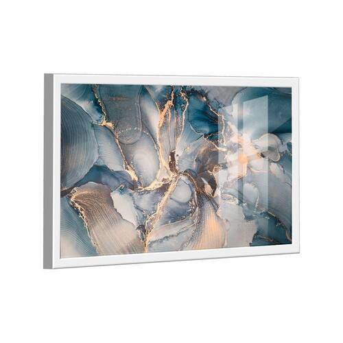 Quadro Abstrato Azul Gold -- BR ARTES Moldura Branca e Vidro - Ultra Grande 150x100 -
