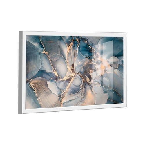 Quadro Abstrato Azul Gold -- BR ARTES Moldura Branca e Vidro - Grande 118x78 -