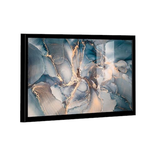 Quadro Abstrato Azul Gold -- Br Artes Quadro Abstrato Azul Gold -- BR ARTES Moldura Preta e Vidro - Pequeno 60x40 - - Qualidade Premium (padrão museu)