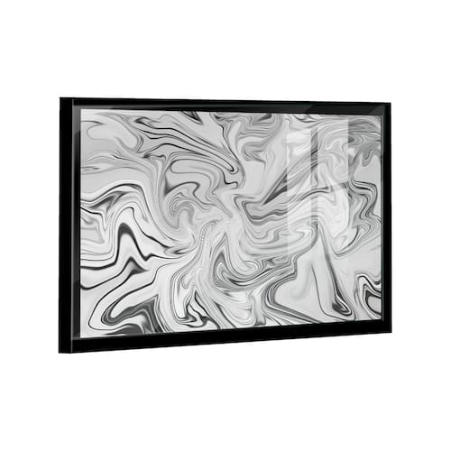 Quadro Abstrato Fluido Branco -- BR ARTES Moldura Preta e Vidro - Pequeno 60x40 -