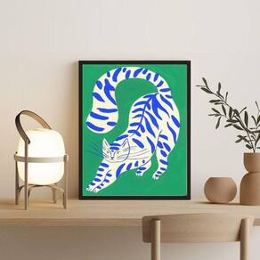 Feito em papel fotográfico brilhante de altíssima resolução, o quadro apresenta uma imagem de um gato verde abstrato, que traz um toque de modernidade e estilo para qualquer espaço. Além disso, ele é acompanhado de uma película de acetato para proteção da imagem, garantindo a durabilidade do quadro.