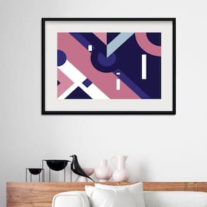 Quadro abstrato geométrico rosa e azul - 60x48cm Moldura: madeira preta Informações do produto tire todas as suas dúvidas no descritivo abaixo: decoração para quarto, sala, cozinha, escritório, área gourmet e muito mais. Chega de paredes vazias medidas - cada peça tem 60x48cm . Material do papel - papel fotográfico brilhante de altíssima resolução acabamento - todos os quadros são acompanhados de vidro para proteção da imagem. - moldura em madeira maciça na cor preta ou branca conforme produto escolhido e pendurador. - paspatur branco com 7cm de largura - os quadros são embalados de forma segura com plástico bolha com camada dupla de acordo com o tamanho dos quadros. Garantia - garantia de 3 meses. Meu quadro chegou. Como posso fixá-lo Você precisa apenas de um martelo e um prego, pois os quadros já vão acompanhados de penduradores. Esta é a forma mais indicada. Como posso limpar meu quadro A limpeza é feita como um móvel comum da sua casa. Apenas um pano seco ou espanador são suficientes para tal