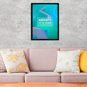 Quadro Acredite Em Si Mesmo 24X18Cm Moldura: madeira branca Informações do produto Decoração para quarto, sala, cozinha, escritório, área gourmet e muito mais. Chega de paredes vazias. Medidas - cada peça tem 24x18cm a5 . Material do papel - papel fotográfico brilhante de altíssima resolução Acabamento - todos os quadros são acompanhados de uma película de acetato para proteção da imagem. - moldura em madeira maciça na cor branca e pendurador móvel que pode ser retirado facilmente caso deseje fixar com fita dupla face. - os quadros são embalados de forma segura com plástico bolha com camada dupla de acordo com o tamanho dos quadros. - de 3 meses Meu quadro chegou. Como posso fixá-lo: Você precisa apenas de um martelo e um prego, pois os quadros já vão acompanhados de penduradores. Esta é a forma mais indicada. Caso prefira, você pode utilizar uma fita dupla face neste caso, sugerimos de alta qualidade para evitar que descole e seu quadro caia . Como posso limpar meu quadro: A limpeza é feita como um móvel comum da sua casa. Apenas um pano seco ou espanador são suficientes para tal