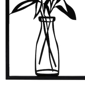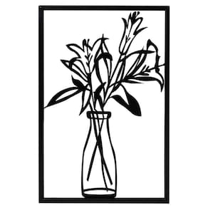 Quadro Adorno Decorativo Vazado em Metal Vaso Tuut O Quadro Adorno Decorativo Vazado em Metal Vaso Tuut é uma peça moderna e sofisticada que traz um toque de elegância e estilo industrial para a decoração do ambiente. Com um design de jarro e folhas em preto, ele é ideal para compor paredes de salas, quartos ou escritórios, adicionando profundidade e charme ao espaço.