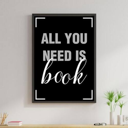 Quadro all you need is book 60x40cm Moldura: madeira preta Informações do produto Decoração para quarto, sala, cozinha, escritório, área gourmet e muito mais. Chega de paredes vazias Medidas - cada peça tem 60x42cm a2 . Material do papel - papel fotográfico brilhante de altíssima resolução Acabamento - todos os quadros são acompanhados de uma película de acetato para proteção da imagem. - Os quadros são embalados de forma segura com plástico bolha com camada dupla de acordo com o tamanho dos quadros. - de 3 meses. Meu quadro chegou. Como posso fixá-lo Você precisa apenas de um martelo e um prego, pois os quadros já vão acompanhados de penduradores. Esta é a forma mais indicada. Caso prefira, você pode utilizar uma fita dupla face neste caso, sugerimos de alta qualidade para evitar que descole e seu quadro caia . Como posso limpar meu quadro A limpeza é feita como um móvel comum da sua casa. Apenas um pano seco ou espanador são suficientes para tal Marca: Não Informado
