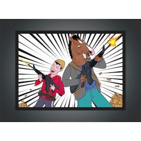Quadro Anime Bojack Horseman Desenho Com Moldura G03 - Tamanho 42 cm de comprimento x 30 cm de largura, moldura forte rígida, lisa de perfeito acabamento; - qualidade do quadro Impressão em policarbonato específico, próprio para o uso na indústria gráfica. Consiste basicamente de uma camada de revestimento texturizado no qual a impressão conserva-se impermeável, resistente a riscos e a exposição solar. O produto é composto de materiais não tóxicos. Possui altíssima resolução e apresenta longa durabilidade. Pode-se limpá-lo com facilidade utilizando álcool ou pano úmido. E o mais importante de tudo: o quadro apresenta uma estética super atraente, proporcionando um efeito visual que deixará seu ambiente muito mais agradável. Você poderá utilizá-lo para decorações em consultórios, salas comerciais, ambientes domésticos, empresariais ou outros ambientes os quais queira deixá-los mais atrativos, com a beleza, o encanto e a harmonia proporcionados Pelos quadros decorativos; - Acompanha o suporte atrás pronto para fixá-lo à parede; - Possui moldura: Sim; - Cor da moldura: Preto; - Pronto para pendurar: Sim; Marca: Não Informado