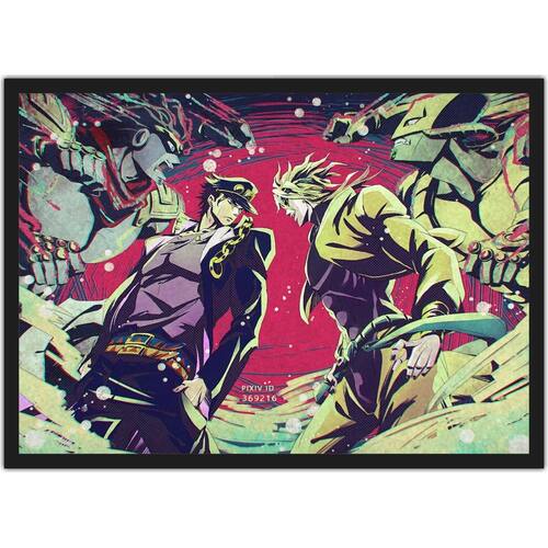Quadro Anime Jojo'S Bizarre Adventure Desenho Com Moldura - Tamanho 42 cm de comprimento x 30 cm de largura, moldura forte rígida, lisa de perfeito acabamento; - Qualidade Do Quadro Impressão em policarbonato específico, próprio para o uso na indústria gráfica. Consiste basicamente de uma camada de revestimento texturizado no qual impressão conserva-se impermeável, resistente a riscos e a exposição solar. O produto é composto de materiais não tóxicos. Possui altíssima resolução e apresenta longa durabilidade. Pode-se limpá-lo com facilidade utilizando álcool ou pano úmido. E o mais importante de tudo: o quadro apresenta uma estética super atraente, proporcionando um efeito visual que deixará seu ambiente muito mais agradável. Você poderá utilizá-lo para decorações em consultórios, salas comerciais, ambientes domésticos, empresariais ou outros ambientes os quais queira deixá-los mais atrativos, com a beleza, o encanto e a harmonia proporcionados pelos quadros decorativos; - Acompanha o suporte atrás pronto para fixá-lo à parede; - Possui moldura: Sim; - Cor da moldura: Preto; - Pronto para pendurar: Sim; Marca: Vital Quadros Do Brasil