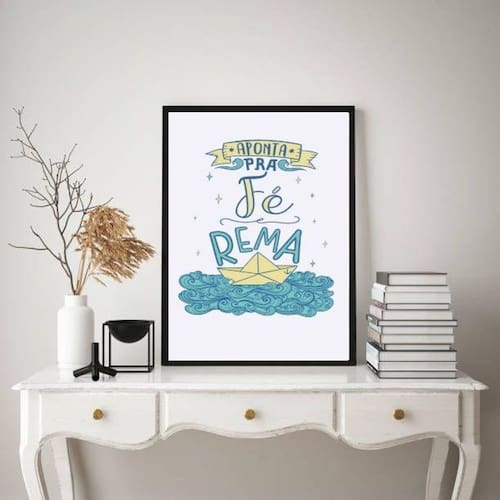 Quadro aponta pra fé e rema 45x34cm Cor: moldura branca Informações do produto tire todas as suas dúvidas no descritivo abaixo: decoração para quarto, sala, cozinha, escritório, área gourmet e muito mais. Chega de paredes vazias. Medidas - cada peça tem 45x34cm a3 . Material do papel - papel fotográfico brilhante de altíssima resolução acabamento - todos os quadros são acompanhados de uma película de acetato para proteção da imagem. - os quadros são embalados de forma segura com plástico bolha com camada dupla de acordo com o tamanho dos quadros. Garantia - garantia de 3 meses. Meu quadro chegou. Como posso fixá-lo Você precisa apenas de um martelo e um prego, pois os quadros já vão acompanhados de penduradores. Esta é a forma mais indicada. Caso prefira, você pode utilizar uma fita dupla face neste caso, sugerimos de alta qualidade para evitar que descole e seu quadro caia . Como posso limpar meu quadro A limpeza é feita como um móvel comum da sua casa. Apenas um pano seco ou espanador são suficientes para tal