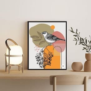 Este quadro é produzido com a técnica de aquarela abstrata, resultando em uma imagem única e cheia de personalidade. O passarinho retratado confere delicadeza e encanto à peça, tornando-a uma escolha perfeita para quem busca um toque de natureza em sua decoração.