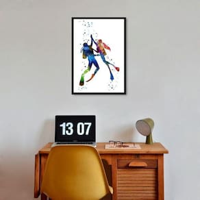 Quadro aquarela casal de mergulhadores 24x18cm Moldura: madeira preta Informações do produto tire todas as suas dúvidas no descritivo abaixo: decoração para quarto, sala, cozinha, escritório, área gourmet e muito mais. Chega de paredes vazias medidas - cada peça tem 24x18cm a5 . Material do papel - papel fotográfico brilhante de altíssima resolução acabamento - todos os quadros são acompanhados de uma película de acetato para proteção da imagem. - os quadros são embalados de forma segura com plástico bolha com camada dupla de acordo com o tamanho dos quadros. Garantia - garantia de 3 meses. Meu quadro chegou. Como posso fixá-lo Você precisa apenas de um martelo e um prego, pois os quadros já vão acompanhados de penduradores. Esta é a forma mais indicada. Caso prefira, você pode utilizar uma fita dupla face neste caso, sugerimos de alta qualidade para evitar que descole e seu quadro caia . Como posso limpar meu quadro A limpeza é feita como um móvel comum da sua casa. Apenas um pano seco ou espanador são suficientes para tal