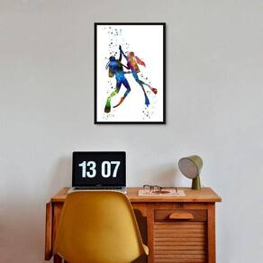 Quadro aquarela casal de mergulhadores 24x18cm Moldura: madeira branca Informações do produto tire todas as suas dúvidas no descritivo abaixo: decoração para quarto, sala, cozinha, escritório, área gourmet e muito mais. Chega de paredes vazias medidas - cada peça tem 24x18cm a5 . Material do papel - papel fotográfico brilhante de altíssima resolução acabamento - todos os quadros são acompanhados de uma película de acetato para proteção da imagem. - os quadros são embalados de forma segura com plástico bolha com camada dupla de acordo com o tamanho dos quadros. Garantia - garantia de 3 meses. Meu quadro chegou. Como posso fixá-lo Você precisa apenas de um martelo e um prego, pois os quadros já vão acompanhados de penduradores. Esta é a forma mais indicada. Caso prefira, você pode utilizar uma fita dupla face neste caso, sugerimos de alta qualidade para evitar que descole e seu quadro caia . Como posso limpar meu quadro A limpeza é feita como um móvel comum da sua casa. Apenas um pano seco ou espanador são suficientes para tal