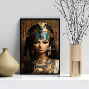 Quadro arquétipo cleópatra - face 45x34cm - com vidro Cor: moldura branca Informações do produto tire todas as suas dúvidas no descritivo abaixo: decoração para quarto, sala, cozinha, escritório, área gourmet e muito mais. Chega de paredes vazias medidas - cada peça tem 45x34cm a3 . Material do papel - papel fotográfico brilhante de altíssima resolução acabamento - todos os quadros são acompanhados de vidro para proteção da imagem. - moldura em madeira maciça na cor preta ou branca conforme produto escolhido e pendurador . - os quadros são embalados de forma segura com plástico bolha com camada dupla de acordo com o tamanho dos quadros. - de 3 meses. Meu quadro chegou. Como posso fixá-lo Você precisa apenas de um martelo e um prego, pois os quadros já vão acompanhados de penduradores. Esta é a forma mais indicada. Como posso limpar meu quadro A limpeza é feita como um móvel comum da sua casa. Apenas um pano seco ou espanador são suficientes para tal Marca: Não Informado