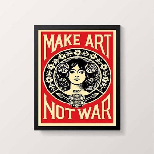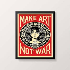 Quadro art nouveau make art not war 45x34cm - com vidro Moldura: madeira preta Informações do produto tire todas as suas dúvidas no descritivo abaixo: decoração para quarto, sala, cozinha, escritório, área gourmet e muito mais. Chega de paredes vazias medidas - cada peça tem 45x34cm a3 . Material do papel - papel fotográfico brilhante de altíssima resolução acabamento - todos os quadros são acompanhados de vidro para proteção da imagem. - moldura em madeira maciça na cor preta e pendurador . - os quadros são embalados de forma segura com plástico bolha com camada dupla de acordo com o tamanho dos quadros. Garantia - garantia de 3 meses. Meu quadro chegou. Como posso fixá-lo Você precisa apenas de um martelo e um prego, pois os quadros já vão acompanhados de penduradores. Esta é a forma mais indicada. Como posso limpar meu quadro A limpeza é feita como um móvel comum da sua casa. Apenas um pano seco ou espanador são suficientes para tal