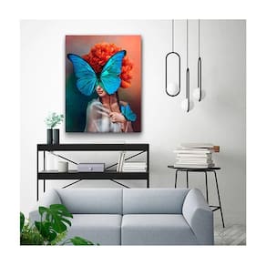 Quadro Arte Conceito Blue Butterfly Face C/ Moldura Dourada E Vidro Tamanho:90 X 60 Cm