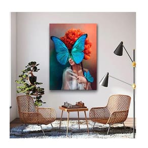 Quadro Arte Conceito Blue Butterfly Face C- Moldura Preta Tamanho 120 X 80cm
