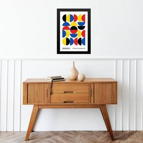 Quadro arte geométrica vintage bauhaus 24x18cm - com vidro Cor: moldura preta Informações do produto tire todas as suas dúvidas no descritivo abaixo: decoração para quarto, sala, cozinha, escritório, área gourmet e muito mais. Chega de paredes vazias medidas - cada peça tem 24x18cm a5 . Material do papel - papel fotográfico brilhante de altíssima resolução acabamento - todos os quadros são acompanhados de vidro para proteção da imagem. - moldura em madeira maciça na cor preta ou branca conforme produto escolhido e pendurador . - os quadros são embalados de forma segura com plástico bolha com camada dupla de acordo com o tamanho dos quadros. Garantia - garantia de 3 meses. Meu quadro chegou. Como posso fixá-lo Você precisa apenas de um martelo e um prego, pois os quadros já vão acompanhados de penduradores. Esta é a forma mais indicada. Como posso limpar meu quadro A limpeza é feita como um móvel comum da sua casa. Apenas um pano seco ou espanador são suficientes para tal