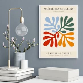 Quadro arte matisse abstrata colorida 24x18cm - com vidro Moldura: madeira branca Informações do produto tire todas as suas dúvidas no descritivo abaixo: decoração para quarto, sala, cozinha, escritório, área gourmet e muito mais. Chega de paredes vazias medidas - cada peça tem 24x18cm a5 . Material do papel - papel fotográfico brilhante de altíssima resolução acabamento - todos os quadros são acompanhados de vidro para proteção da imagem. - moldura em madeira maciça na cor preta ou branca conforme produto escolhido e pendurador . - os quadros são embalados de forma segura com plástico bolha com camada dupla de acordo com o tamanho dos quadros. Garantia - garantia de 3 meses. Meu quadro chegou. Como posso fixá-lo Você precisa apenas de um martelo e um prego, pois os quadros já vão acompanhados de penduradores. Esta é a forma mais indicada. Como posso limpar meu quadro A limpeza é feita como um móvel comum da sua casa. Apenas um pano seco ou espanador são suficientes para tal