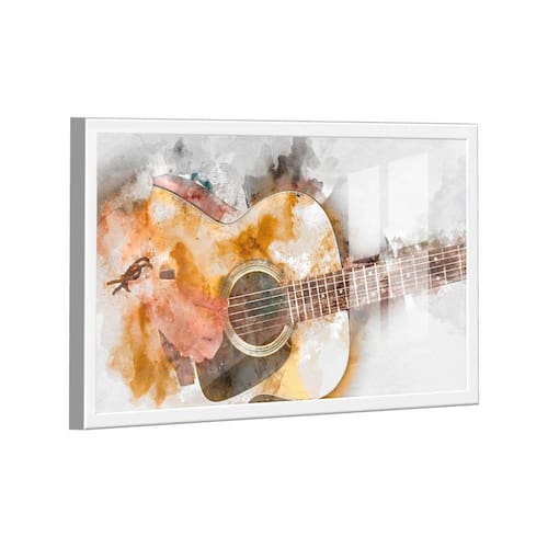 Quadro Arte Violão Aquarela -- Br Artes Quadro Arte Violão Aquarela -- BR ARTES Moldura Branca e Vidro - Ultra Grande 150x100 - - Qualidade Premium (padrão museu)