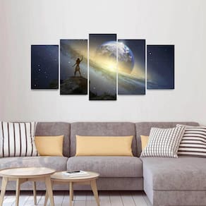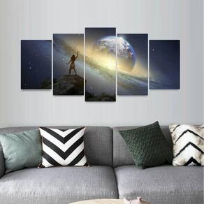 Quadro Artístico Fantasia Planeta Galáxia Mosaico 5 Peças