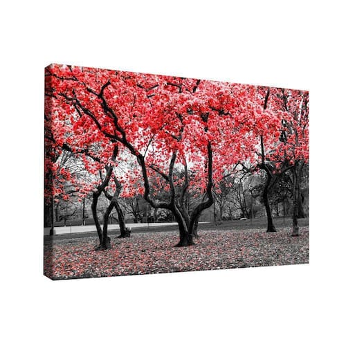 Quadro Árvores Branco e Vermelho Borda Infinita - Pequeno 60x40 -