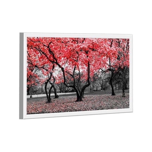 Quadro Árvores Branco e Vermelho Moldura Branca - Gigante 180x105 -