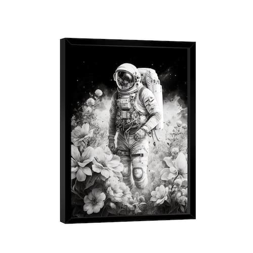 Quadro Astronauta Flores -- BR ARTES Moldura Preta - Gigante 180x105 -