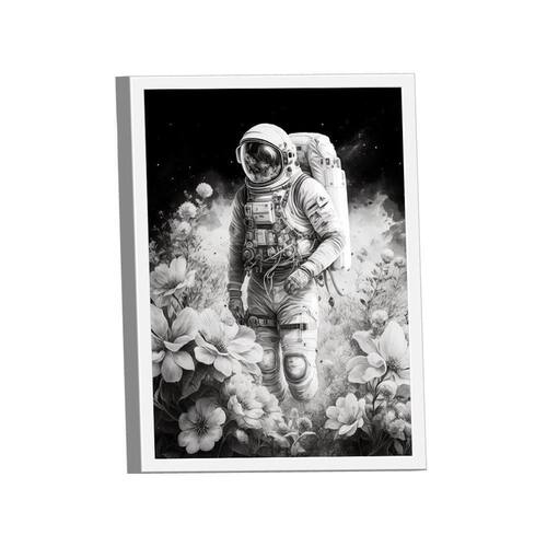 Quadro Astronauta Flores -- BR ARTES Moldura Branca - Gigante 180x105 -