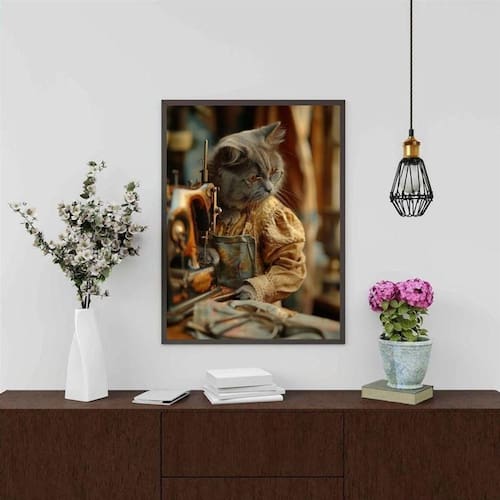 Quadro atelier de costura retrô - gatinha 33x24cm Cor: moldura preta Informações do produto tire todas as suas dúvidas no descritivo abaixo: decoração para quarto, sala, cozinha, escritório, área gourmet e muito mais. Chega de paredes vazias medidas - cada peça tem 33x24cm a4 . Material do papel - papel fotográfico brilhante de altíssima resolução acabamento - todos os quadros são acompanhados de uma película de acetato para proteção da imagem. - os quadros são embalados de forma segura com plástico bolha com camada dupla de acordo com o tamanho dos quadros. - de 3 meses. Meu quadro chegou. Como posso fixá-lo Você precisa apenas de um martelo e um prego, pois os quadros já vão acompanhados de penduradores. Esta é a forma mais indicada. Caso prefira, você pode utilizar uma fita dupla face neste caso, sugerimos de alta qualidade para evitar que descole e seu quadro caia . Como posso limpar meu quadro A limpeza é feita como um móvel comum da sua casa. Apenas um pano seco ou espanador são suficientes para tal Marca: Não Informado Ean: 7891234544858