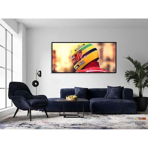 Quadro Ayrton Senna Capacete Decoração 130x60 Moldura Preta 2x2
