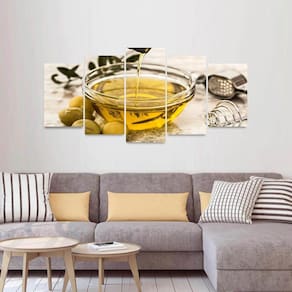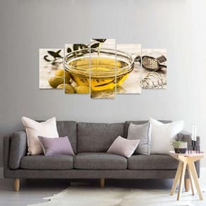 Quadro Azeite Salada Para Resturantes Mosaico 5 Peças