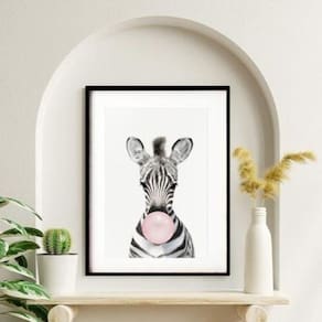 Quadro Baby Zebra Bubble Gum - 60X48Cm