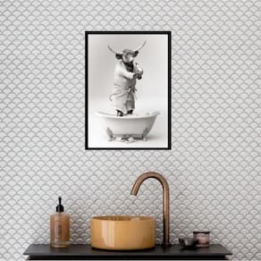 Quadro banheiro coleção animais - boi 24x18cm - com vidro Moldura: madeira branca Informações do produto tire todas as suas dúvidas no descritivo abaixo: decoração para quarto, sala, cozinha, escritório, área gourmet e muito mais. Chega de paredes vazias medidas - cada peça tem 24x18cm a5 . Material do papel - papel fotográfico brilhante de altíssima resolução acabamento - todos os quadros são acompanhados de vidro para proteção da imagem. - moldura em madeira maciça na cor preta ou branca conforme produto escolhido e pendurador . - os quadros são embalados de forma segura com plástico bolha com camada dupla de acordo com o tamanho dos quadros. Garantia - garantia de 3 meses. Meu quadro chegou. Como posso fixá-lo Você precisa apenas de um martelo e um prego, pois os quadros já vão acompanhados de penduradores. Esta é a forma mais indicada. Como posso limpar meu quadro A limpeza é feita como um móvel comum da sua casa. Apenas um pano seco ou espanador são suficientes para tal