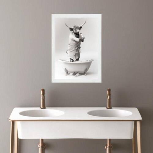 Quadro banheiro coleção animais - boi 45x34cm - com vidro Moldura: madeira branca Informações do produto tire todas as suas dúvidas no descritivo abaixo: decoração para quarto, sala, cozinha, escritório, área gourmet e muito mais. Chega de paredes vazias medidas - cada peça tem 45x34cm a3 . Material do papel - papel fotográfico brilhante de altíssima resolução acabamento - todos os quadros são acompanhados de vidro para proteção da imagem. - moldura em madeira maciça na cor preta ou branca conforme produto escolhido e pendurador . - os quadros são embalados de forma segura com plástico bolha com camada dupla de acordo com o tamanho dos quadros. Garantia - garantia de 3 meses. Meu quadro chegou. Como posso fixá-lo Você precisa apenas de um martelo e um prego, pois os quadros já vão acompanhados de penduradores. Esta é a forma mais indicada. Como posso limpar meu quadro A limpeza é feita como um móvel comum da sua casa. Apenas um pano seco ou espanador são suficientes para tal
