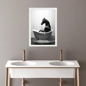 Quadro banheiro coleção animais - cavalo 45x34cm - com vidro Moldura: madeira preta Informações do produto tire todas as suas dúvidas no descritivo abaixo: decoração para quarto, sala, cozinha, escritório, área gourmet e muito mais. Chega de paredes vazias medidas - cada peça tem 45x34cm a3 . Material do papel - papel fotográfico brilhante de altíssima resolução acabamento - todos os quadros são acompanhados de vidro para proteção da imagem. - moldura em madeira maciça na cor preta ou branca conforme produto escolhido e pendurador . - os quadros são embalados de forma segura com plástico bolha com camada dupla de acordo com o tamanho dos quadros. Garantia - garantia de 3 meses. Meu quadro chegou. Como posso fixá-lo Você precisa apenas de um martelo e um prego, pois os quadros já vão acompanhados de penduradores. Esta é a forma mais indicada. Como posso limpar meu quadro A limpeza é feita como um móvel comum da sua casa. Apenas um pano seco ou espanador são suficientes para tal