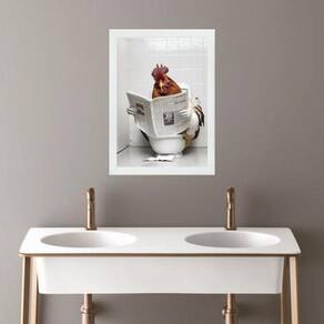 Quadro banheiro coleção animais - galo 45x34cm Moldura: madeira preta Informações do produto tire todas as suas dúvidas no descritivo abaixo: decoração para quarto, sala, cozinha, escritório, área gourmet e muito mais. Chega de paredes vazias. Medidas - cada peça tem 45x34cm a3 . Material do papel - papel fotográfico brilhante de altíssima resolução acabamento - todos os quadros são acompanhados de uma película de acetato para proteção da imagem. - os quadros são embalados de forma segura com plástico bolha com camada dupla de acordo com o tamanho dos quadros. Garantia - garantia de 3 meses. Meu quadro chegou. Como posso fixá-lo Você precisa apenas de um martelo e um prego, pois os quadros já vão acompanhados de penduradores. Esta é a forma mais indicada. Caso prefira, você pode utilizar uma fita dupla face neste caso, sugerimos de alta qualidade para evitar que descole e seu quadro caia . Como posso limpar meu quadro A limpeza é feita como um móvel comum da sua casa. Apenas um pano seco ou espanador são suficientes para tal