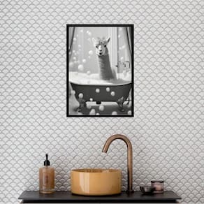 Quadro banheiro coleção animais - lhama 24x18cm Moldura: madeira preta Informações do produto tire todas as suas dúvidas no descritivo abaixo: decoração para quarto, sala, cozinha, escritório, área gourmet e muito mais. Chega de paredes vazias medidas - cada peça tem 24x18cm a5 . Material do papel - papel fotográfico brilhante de altíssima resolução acabamento - todos os quadros são acompanhados de uma película de acetato para proteção da imagem. - os quadros são embalados de forma segura com plástico bolha com camada dupla de acordo com o tamanho dos quadros. Garantia - garantia de 3 meses. Meu quadro chegou. Como posso fixá-lo Você precisa apenas de um martelo e um prego, pois os quadros já vão acompanhados de penduradores. Esta é a forma mais indicada. Caso prefira, você pode utilizar uma fita dupla face neste caso, sugerimos de alta qualidade para evitar que descole e seu quadro caia . Como posso limpar meu quadro A limpeza é feita como um móvel comum da sua casa. Apenas um pano seco ou espanador são suficientes para tal